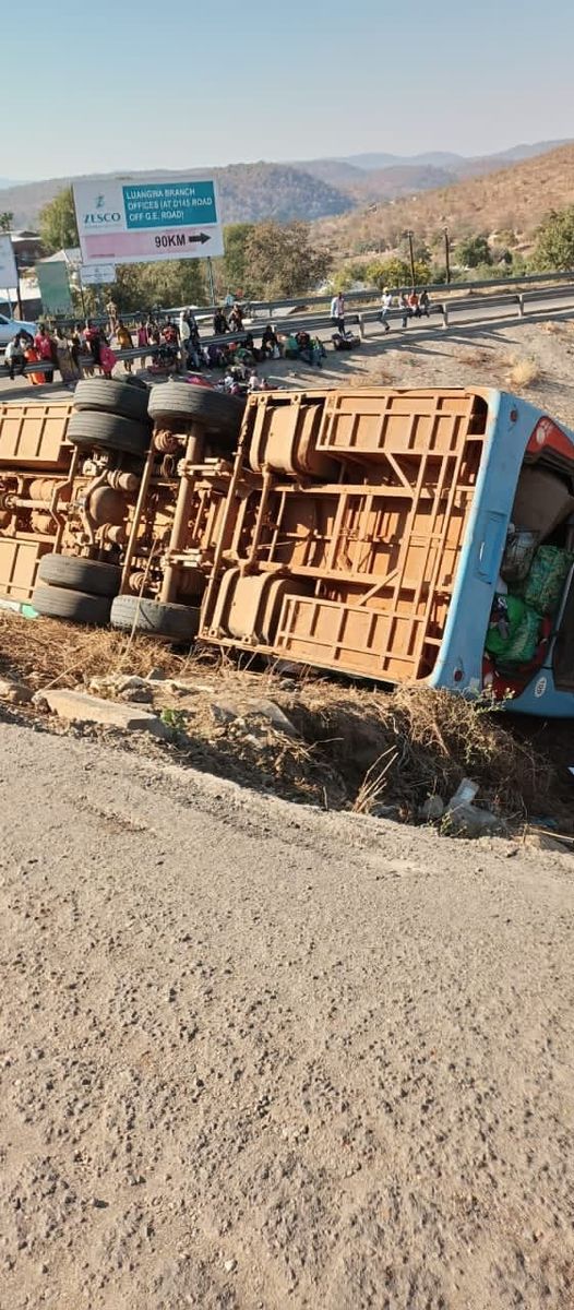 This Mwekache bus from Lundazi destined for Lusaka had an accident at Luangwa market this morning. The driver and several passengers sustained some injuries. Fortunately, no death has been recorded.