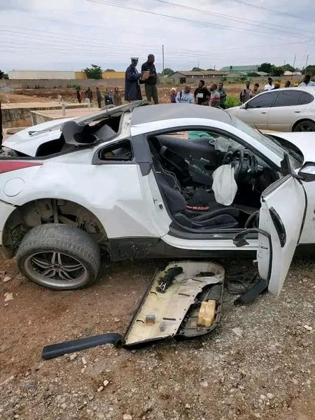 According to ZED TV NEWS, the sports car was over speeding along Likayi road as it approached Ring road but the traffic police officers who arrived on the scene shortly after our crew arrived have not yet made a comment.