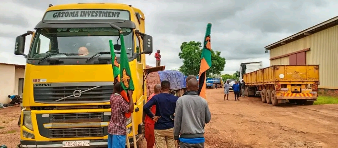 Eastern Province Permanent Secretary Paul Thole is flagging off the transportation of the 100 metrics tones of maize to Malawi in Chipata today.