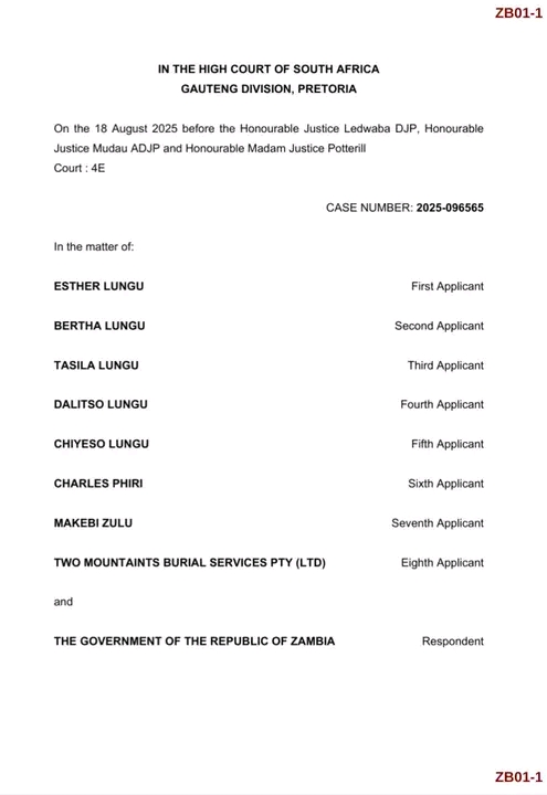 3. Procedural Irregularities – The appeal stated that earlier rulings failed to properly consider submissions on jurisdiction and denied the family the right to have their case fully heard before any burial directive could be enforced.During a brief sitting in Pretoria, the High Court confirmed that it would not proceed with the case until the Supreme Court delivers its ruling on these critical issues. With this judgment, the family remains the sole custodians of the late President’s remains, and the Government of Zambia will not have access to, nor can it repatriate, the body until the higher court provides guidance.