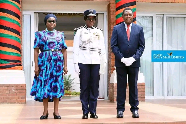 NEWLY-appointed Deputy Inspector General of Police for Administration Charity Munganga with President Hakainde Hichilema and Vice-President Mutale Nalumango at State House after being sworn in.