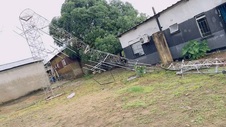 The disaster occurred today around 15:00 hours, when heavy winds caused our tower (Radio Mast) to collapse, leading to significant damage to the roof of the manager’s office and transmitter room.